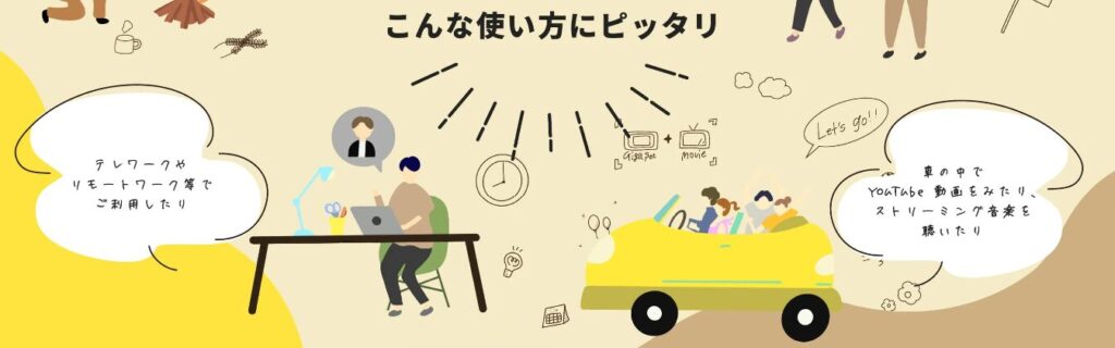 自宅の固定回線やスマートフォンのデータ容量の補助として活用。 - 外出先での利用: